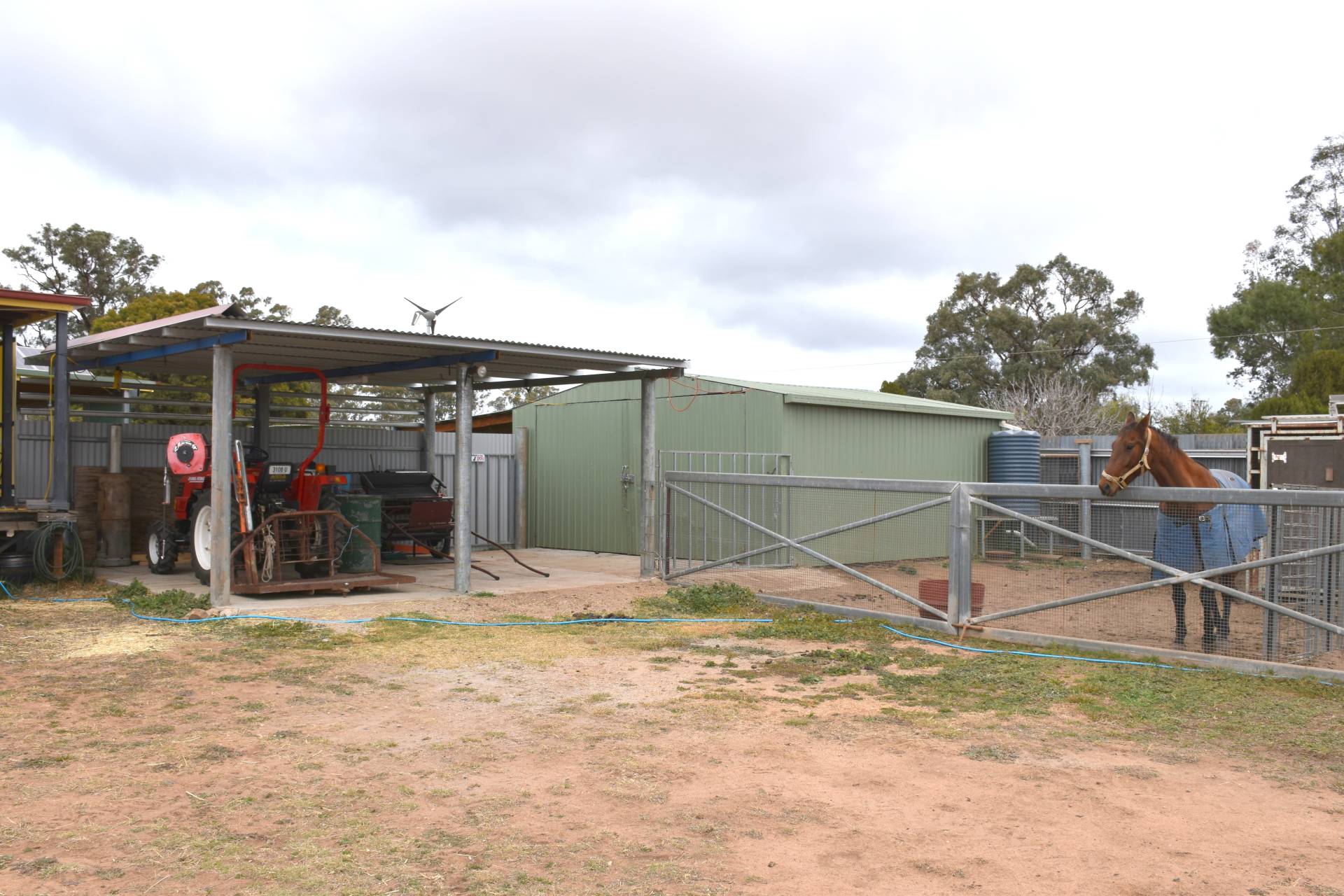 The property is set with horse yard and feed shed.