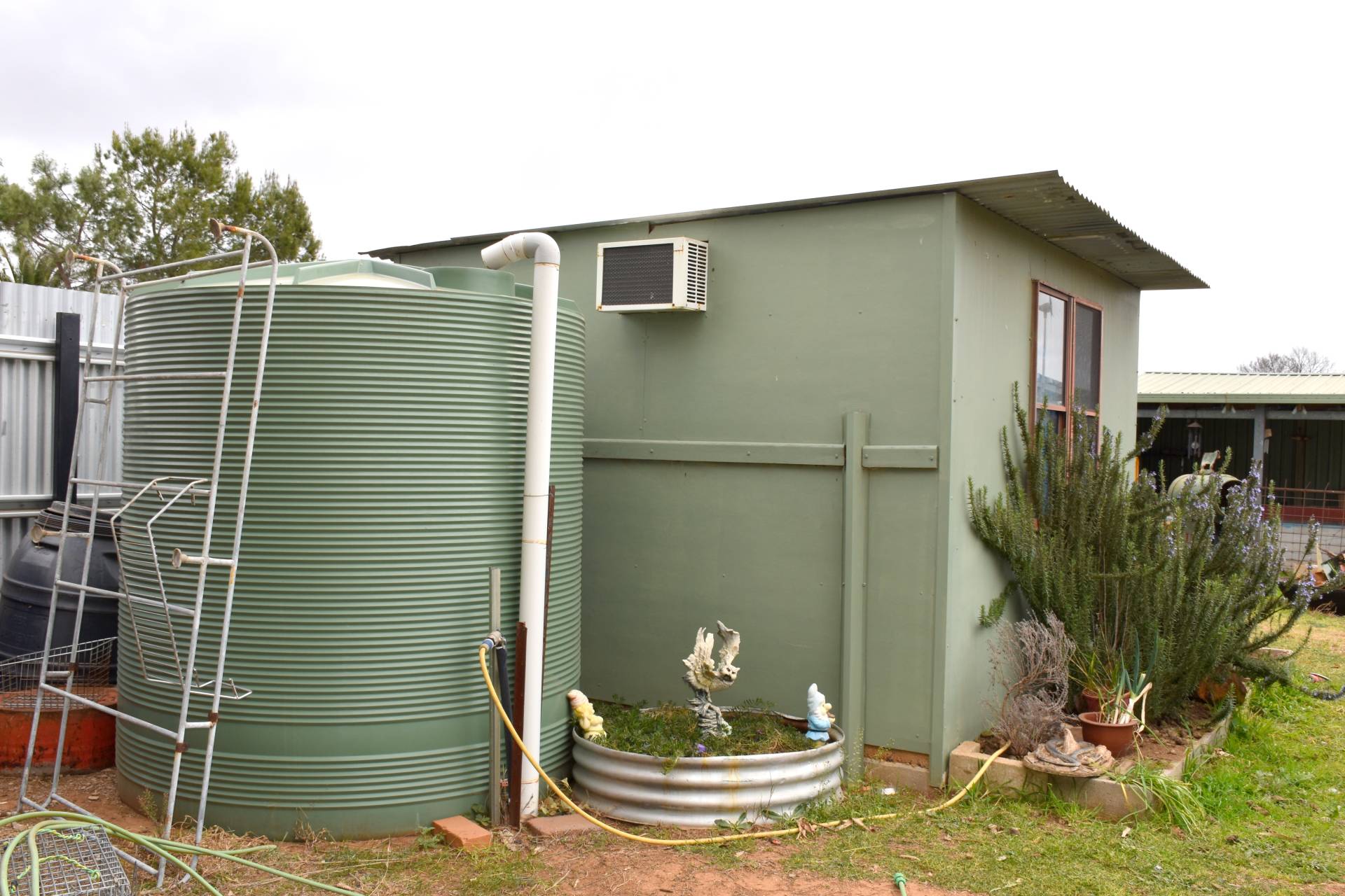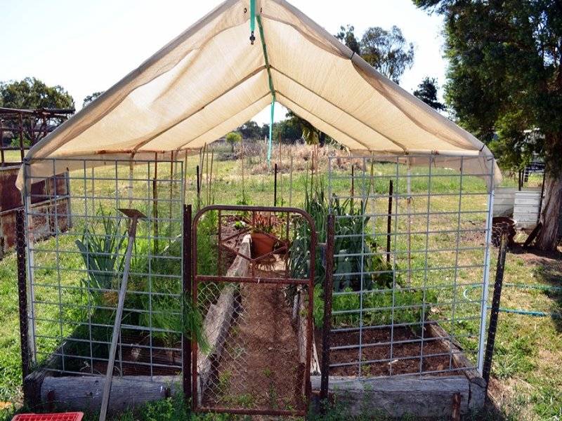 • Chook yards, potting house, small orchard and vegetable garden
