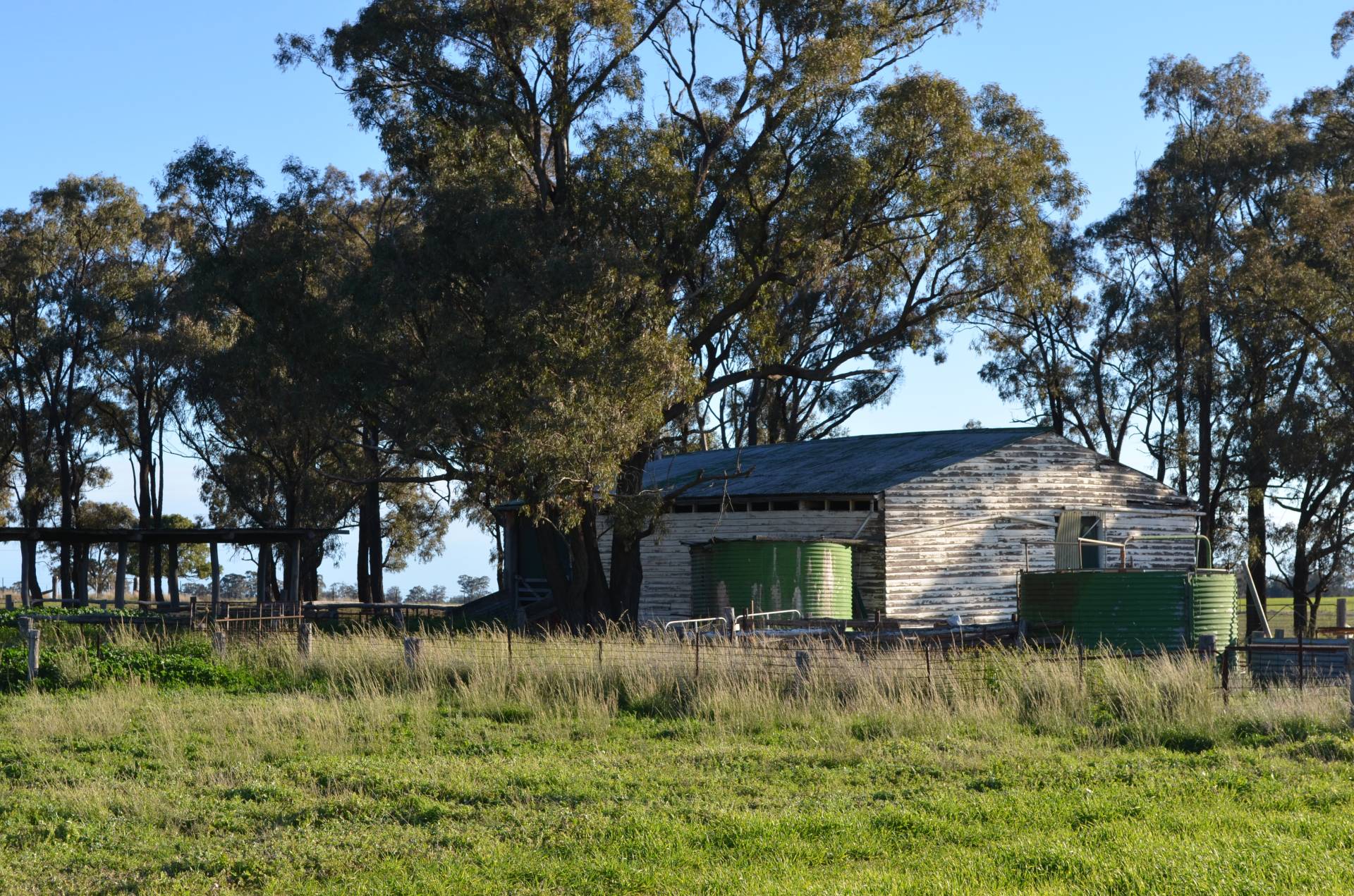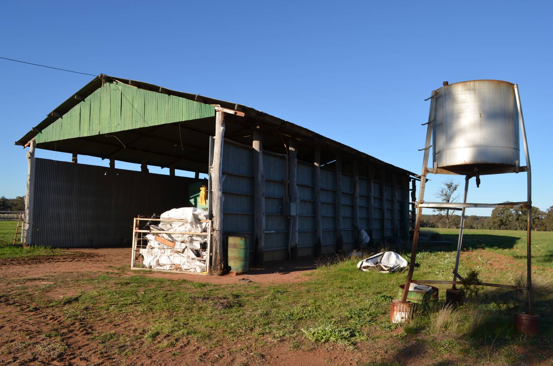 Working Buildings: 50’ x 25’ machinery shed, hay shed, grain shed, 2 x stand shearing shed, steel cattle yards and sheep yards.